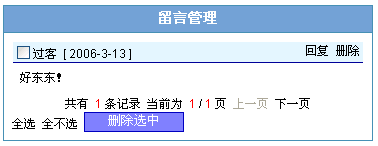 十三、留言及短信 点击左侧的“留言管理”链接即会显示以下页面: |