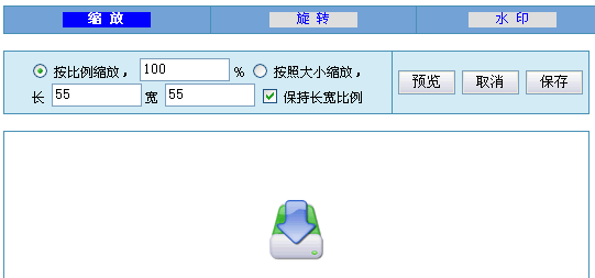 缩放提供两种方式,可以按比例缩,也可以按大小缩,预览可以看效果,取消为恢复原图片,保存为此效果覆盖旧图片。